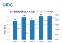 发布时间:2025年12月08日IDC 今日发布《全球智能家居设备市场季度跟踪报告,2025 年第三季度》,2025 年前三季度,全球智能扫地机器人市场累计出货 1742 4 万台,同比增长 18 7%;其中三季度出货 616 1 万台,同比增幅达 22 9%。