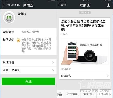 用微信扫描插座屏幕的二维码进入微插座专门的服务号后,除了能够获取在线说明书和社区入口,你还能够在微信中对微插座进行设置。只要微插座在联网,无论你身在何处都能在手机微信上控制四个插座的单独开、关,制定用电计划。在微信上你还能为不止一个微插座进行管理,后台系统做得非常易用和稳定,你能够对多个微插座进行命名管理(比如客厅、睡房等)。
