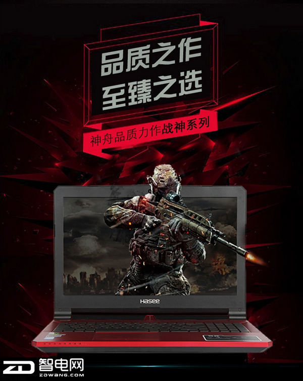 作为游戏本来说,在外观的选择上就要首先突出一个“炫酷”的效果,如果偶然一瞥都不能让你心动的话,那这款笔记本想通过日久生情来培养,可能就偏难一些。像神舟在外观的制作工艺上就比较用心,战神Z7-i78172D2在塑形上选用的是蓝天的加工的模具,为了增强触感,同时提高舒适程度,外壳以深黑塑胶磨砂制成。