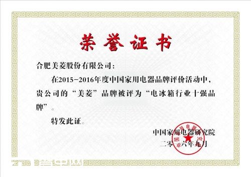 经过近5个月的审核调研,国内白电知名品牌美菱,成功获得2015-2016年度中国家用电器“电冰箱行业十强品牌”荣誉称号。