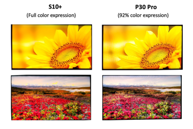 正因如此,三星得以将最好的屏幕体验留给了自家旗舰三星Galaxy S10系列——从过去的Super AMOLED 升级为 Dynamic AMOLED,将亮度、寿命、色彩显示全面提升。三星Galaxy S10+的屏幕PPI超过500,它能够显示1600万种色彩,而且色彩显示达到了100%。反观华为P30系列中顶配的P30 Pro6.47英寸OLED屏幕的色彩显示只达到了92%,用户对两款机型的视觉体验差异可想而知。另据此前专业人士的评测显示结果,华为P30 Pro的显示屏是由京东方和LGD供货。
