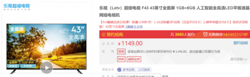 16点场:乐视超级电视F43,限量1149元,16点5折抢购;