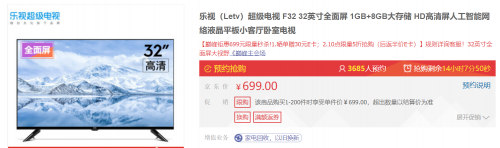 10点场:乐视超级电视F32,巅峰炬惠699元,10点更只要5折、5折、5折;