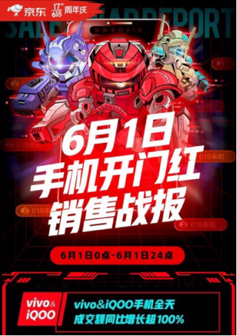 在京东618首日开门红, vivo/iQOO手机出师大捷全天成交额同比增长超100%,在京东618手机竞速榜上,iQOO旗下两款手机iQOO Neo3 与iQOO Z1连续多日霸占5G手机累计销量前两强席位,vivoZ5x也多日强势霸占手机销量与累计销量Top5,昨日vivo的品牌日持续“加分”,vivo也凭借vivoZ5x 、iQOO Neo3强势表现冲进榜单Top5,拿下品牌销量第二名、销额榜第三名的好成绩,vivo整体表现可圈可点,成绩可谓是相当亮眼。