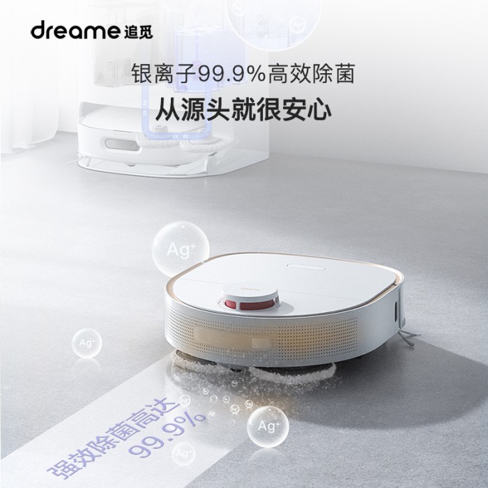 为将居家健康进行到底,追觅科技在W10 Pro的设计中将扫拖洗烘一体与强效除菌进行了开创性结合。“4000Pa大吸力”、“前置加长滚刷”、“双盘拖布加压擦地”这些硬核配置确保脏污清洁一次到位。与此同时,还特别设计了除菌装置,通过银离子的长效抑菌的特性,将消杀工作贯穿始终:在水箱内置银离子缓释颗粒,让银离子水浸湿拖布,对拖布本身进行杀菌,确保清洁源头洁净,而后在湿拖过程中一边清洁地面污渍,一边对地面进行消杀;最后,污水回收至污水箱,银离子依旧可以延缓污水发臭,抑制细菌滋生。整个过程与日常杀菌、消毒方式相比更加安全温和。再也不用担心宠物乱跑、宝宝爬来爬去的健康隐患。