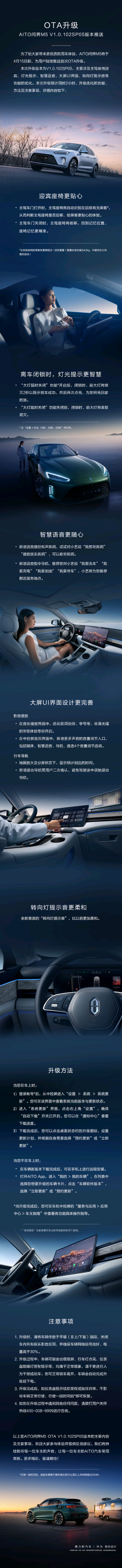 此次问界M5的OTA升级不仅体现更快速的系统、应用、服务的更新能力,更让用户可以享受随用随新的升级体验,增加驾驶安全和乐趣。本次OTA具体功能、升级方法、注意事项如下图: