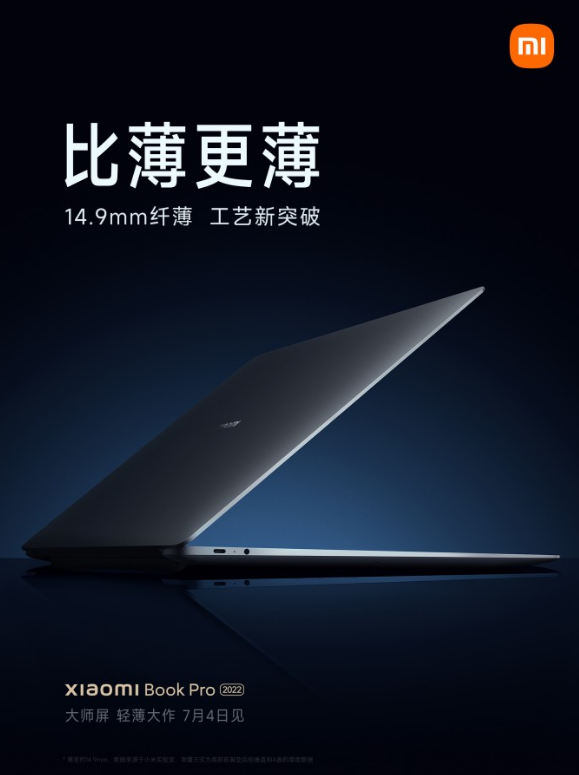 小米 Book Pro 2022 将是一款14英寸显示屏、4K分辨率的轻薄笔记本。14.9mm纤薄工艺,小米分享了该设备的侧面轮廓,其中显示了金属一体成型、USB-C 连接器和耳机插孔。