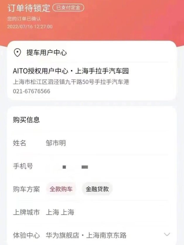 据悉,邹市明下订的问界M7是赛力斯汽车与华为联合设计的第二款车型,新车定位于智慧豪华大型电动SUV,已于7月4日正式上市,即将在8月24日开启首批车主交付。