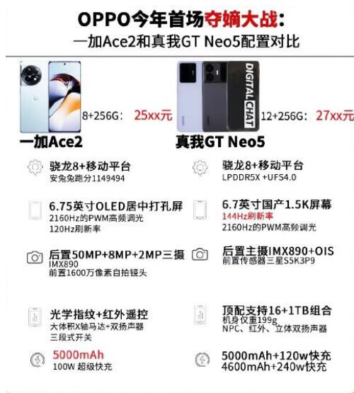 一加Ace2和真我GT Neo5这两款手机 你们会选择哪一款?