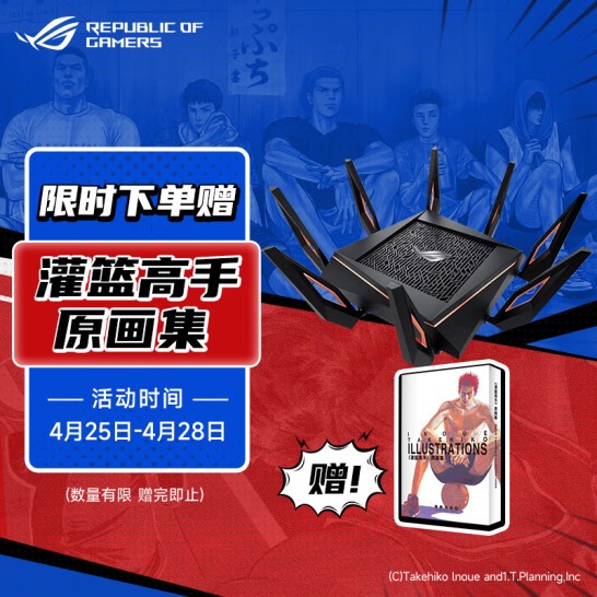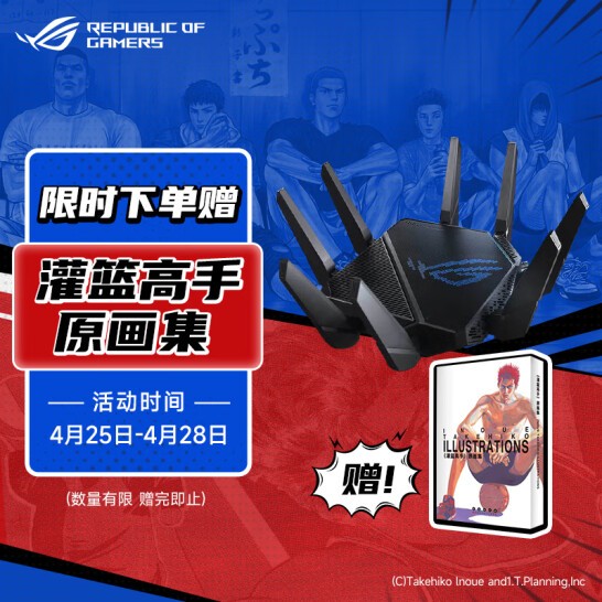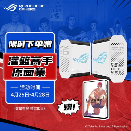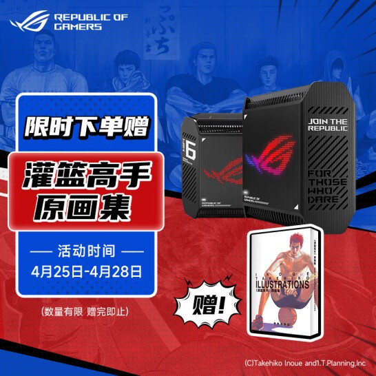 截至4月25日0时,动画电影《灌篮高手》的国内票房已突破4亿大关。这部30年前问世的篮球漫画不仅是无数70、80、90后篮球爱好者的启蒙之作,同样也是曾经的少男少女们青春中无法被抹掉的一个文化符号。为此,华硕网络京东自营旗舰店也推出了买ROG电竞路由赠《灌篮高手》原画集活动,数量有限赠完为止。