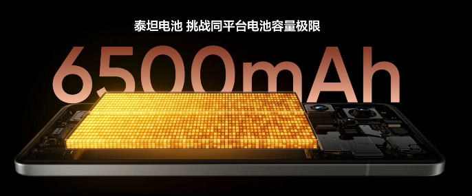 真我x宁德新能源联合首发6500mAh「泰坦电池」!新一代硅碳负极电池技术,挑战行业最高10%含硅量。6500mAh大电池,厚度减少7%,电池更大,机身更薄。120W光速秒充,14分钟充至50%,独家长寿算法4年耐用。