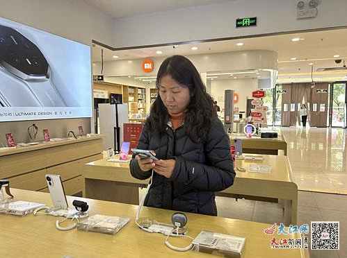 店员介绍,1月20日起,手机、平板、智能手表(手环)“国补”实施后,叠加新春消费热潮,该店手机销量持续走高,而且“国补”领取流程十分方便,消费者只要带好银行卡、身份证,下载云闪付App即可领取。