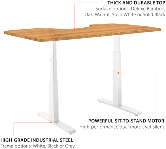 这款桌子可以自动调节高度,办公的时候想坐就坐,想站就站,当你坐着办公超过20分钟时它会提醒你应该站一会儿了。桌面还配备了无限充电板、USB扩展器、高清音响等设备,方便办公。