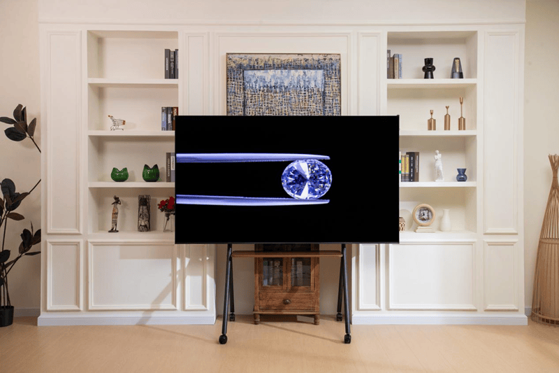 而说到控光,TCL在行业里面拥有着绝对的话语权。比如这款T7L Ultra搭载了TCL自主研发的万象分区技术。TCL通过从背光到呈现的全链路7大技术环节升级,包括发光芯片、透镜、算法等,实现“一区顶多区”的控光精度。以98英寸版本的T7L Ultra为例,2048个万象分区,实现了远超普通4000+普通分区电视的控光效果。比如以下这个画面,明亮的钻石和镊子边缘利落无光晕问题,黑色的背景也非常深邃,画面整体层次感和清晰度都达到了高端影院级水准。