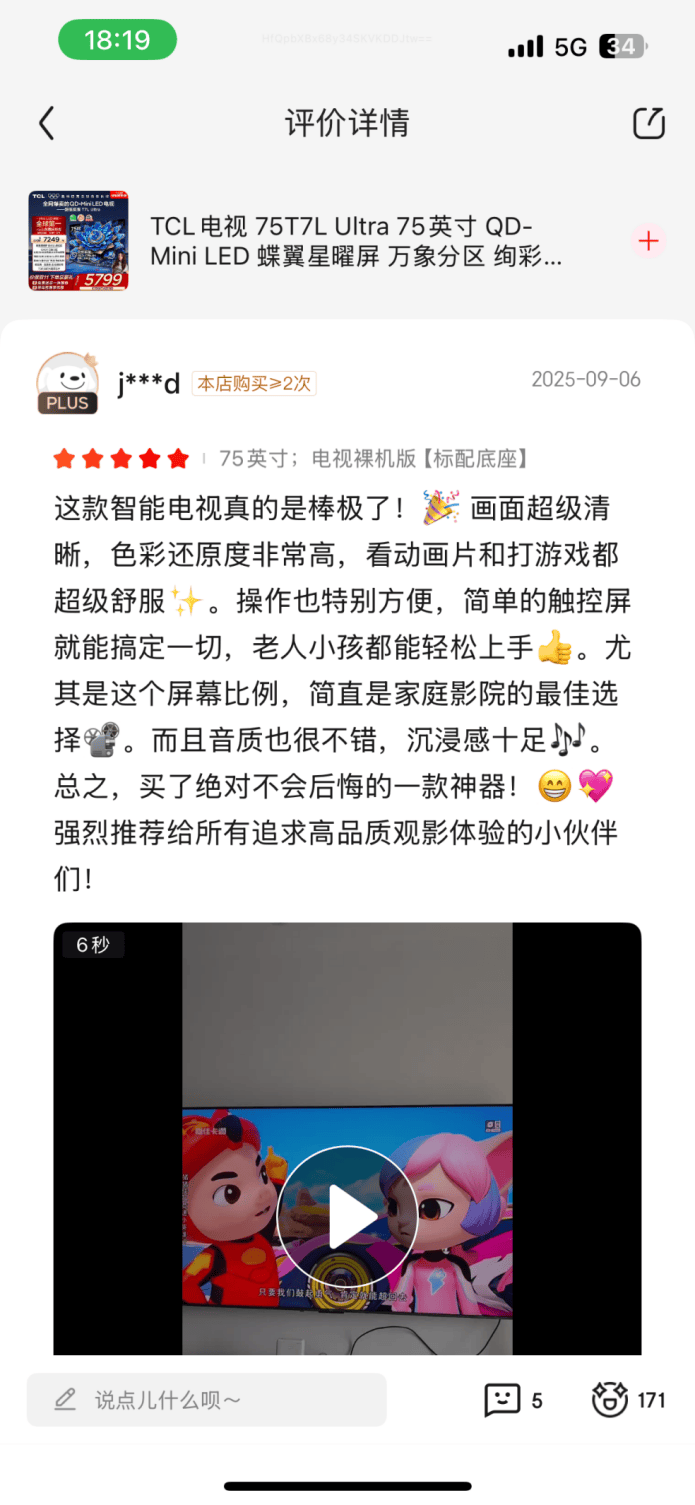 可如今电视市场产品扎堆,挑得人眼花缭乱,消费者想要的其实很简单:不反光、画质好。而TCL T7L Ultra就狠狠戳中了这份需求,自开售起,T7L Ultra在各大电商平台就成了“断货王”,用户反馈更清一色好评:“画面清晰、色彩还原准”“老人小孩都能轻松操作”“音质沉浸感拉满”……这台集画质、音质与智能操控于一身的电视,到底凭什么这么火?