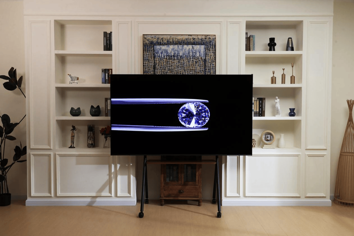说真的,落地窗客厅选电视,最坑的就是踩“伪抗反”的雷。不少用户买过市面上一些同档电视,宣传说的是“抗反光电视”,结果发现屏幕上还是有倒影,而且画面还灰蒙蒙的。这是因为市面上同档电视大多用磨砂膜叠加低反的AGLR屏,虽然能消除部分反射,但屏幕依然残留少量光斑,画面仍然泛白,而且画面失去了通透感;还有些产品采用防眩层技术,减少了反射却无法兼顾黑色均匀度与色彩对比度,牺牲了用户的观影体验。