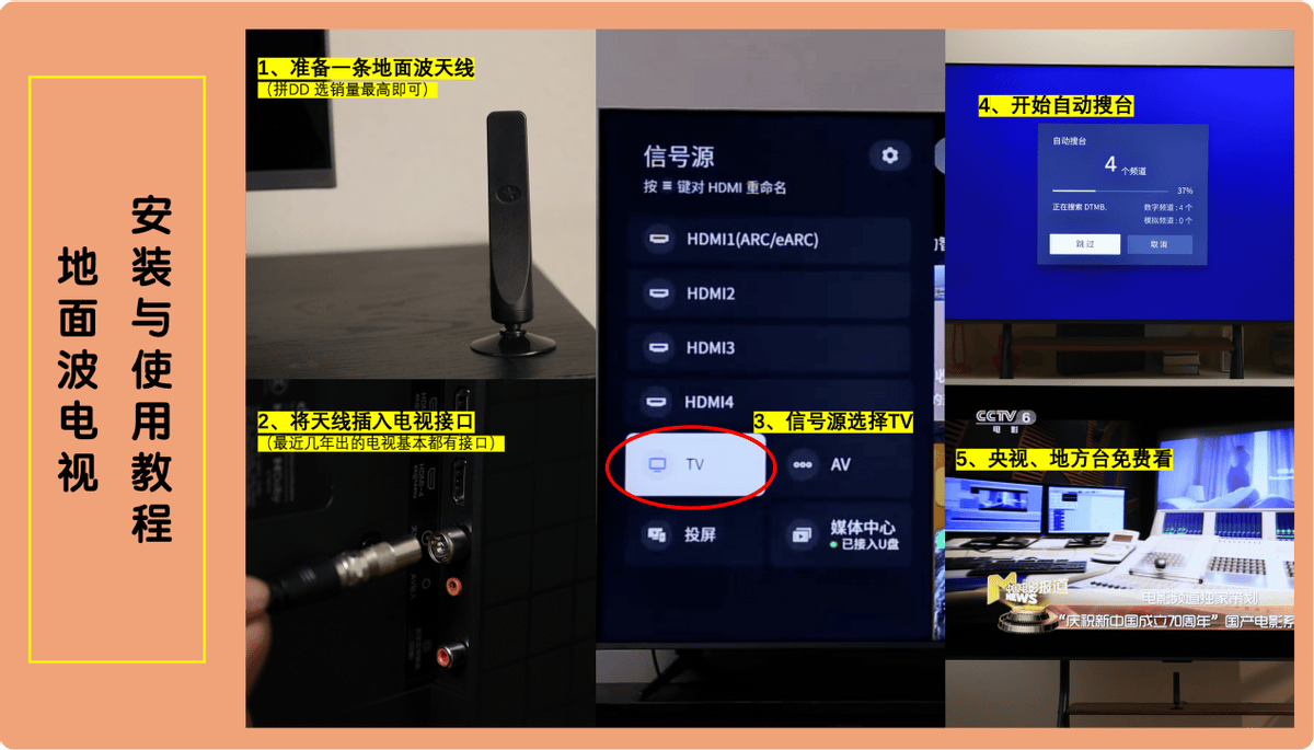 除了抗反,TCL T7L Ultra还有个让年轻人直呼“薅到了”的功能——支持DTMB地面波天线接收电视节目。现在年轻人追剧、看综艺,会员费加起来一年要几百块,而这台电视只要花十几块买根天线,插在接口上搜台,就能免费看央视、地方卫视频道的节目。