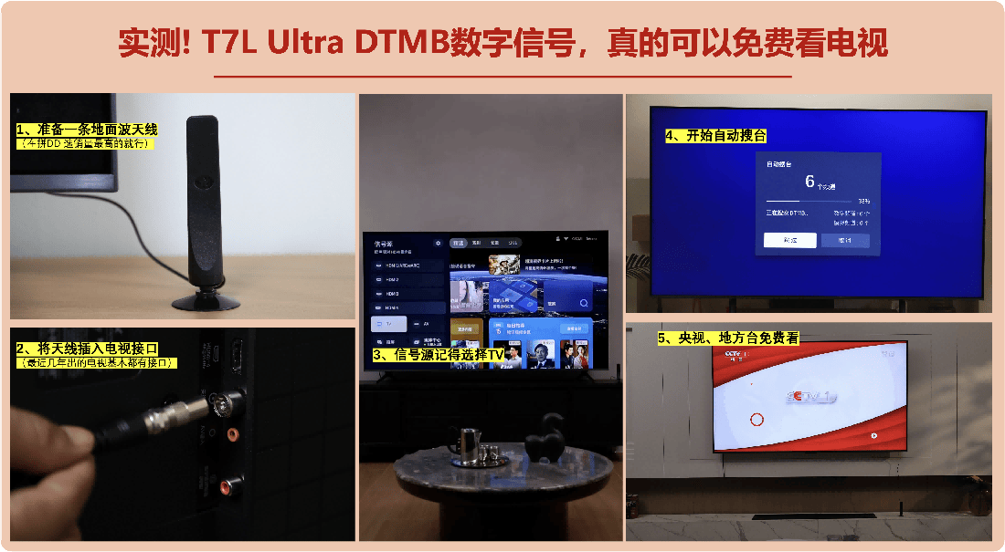 还有一点让朋友觉得“省事儿又省钱”的,是这款TCL T7L Ultra支持地面波信号接收,无需连接网络、不用加装机顶盒,只需接入一根地面波天线,就能免费收看海量节目,不管是央视的新闻、综艺,各省的卫视,还有本地的生活频道,像是老人看戏曲、自己追热剧都能轻松满足,性价比直接拉满。