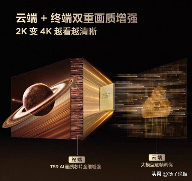 此外,Q9L Pro还搭配了TCL独家的TSR AI画质芯片,支持“云端-终端协同计算画质”架构。在云端,TCL基于海量影视资源进行大模型训练,对片源进行逐帧优化;在终端,强大的TSR AI独立画质芯片则对画面进行零延迟实时调校。在云端+终端的双重加持下,即便低码率流媒体内容,也能实现“越看越清晰、越看越惊艳”的未来式视觉体验。