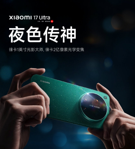 全新小米17Ultra,小米最惊艳的Ultra手机,新配色「星空绿」融入矿石颗粒,如星空璀璨,考究细节,分段式音量键,包裹式中框,舒适握感 | 小型化相机DECO,握持不挡手,简约设计,超大R角2D直屏,8.29mm纤薄机身,专业又优雅的影像旗舰,小米迄今最薄Ultra。