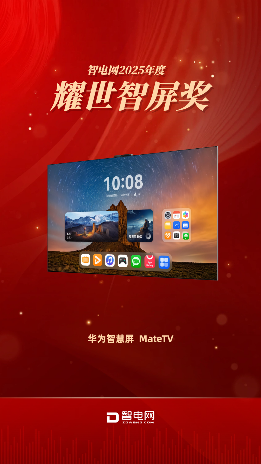 从性能、交互到画质、生态和外观设计,华为智慧屏 MateTV全方位打破了传统电视的边界,既顺应了AI、物联网与显示技术深度融合的行业趋势,也精准命中了消费者对高品质、智能化、场景化体验的核心需求。此次荣获“智电网2025年度耀世智屏奖”,实至名归。对于追求高端影音体验、看重家庭智慧生活的消费者来说,华为智慧屏 MateTV无疑是2025年最值得入手的智屏产品。未来,期待华为继续以创新为驱动力,为智慧家居行业带来更多突破性产品,让科技更好地服务于生活。