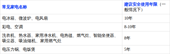 《家用电器安全使用年限》