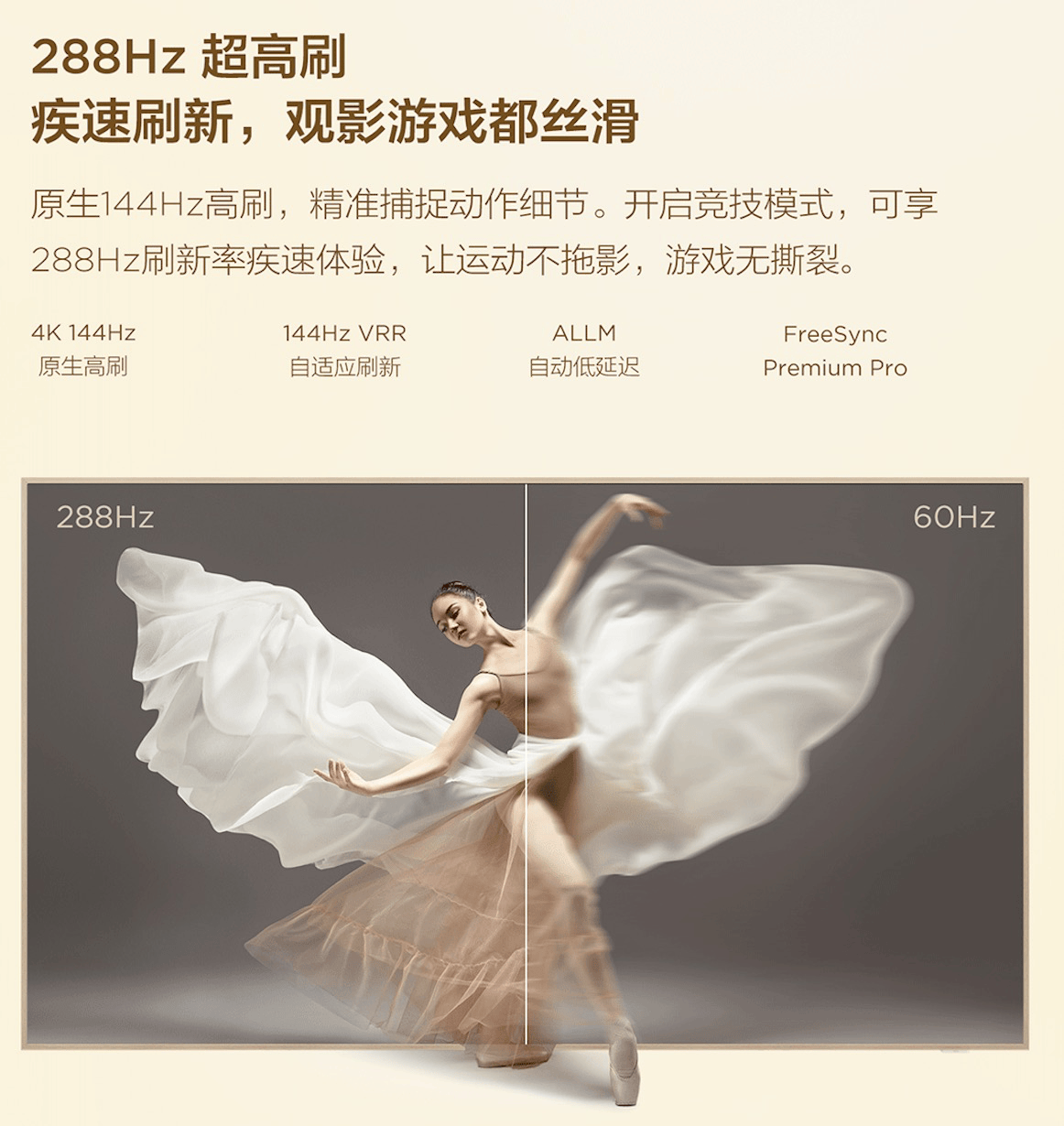 TCL A400 Pro搭载的灵控系统3.0,界面设计简约清爽,操作逻辑清晰,使用起来十分流畅。其中最具亮点的是它的AI艺术生成功能——上传一张照片,或是输入几个关键词,就能一键生成油画、水彩等多种风格的艺术作品,让家秒变私人艺术馆,可玩性极高。硬件方面,它拥有原生4K 144Hz高刷新率,开启竞技模式后更可飙升至288Hz,无论是观看高速运动的体育赛事,还是畅玩大型游戏,都能享受丝滑无拖影的体验。此外,Wi-Fi智能天线功能能自动择优选择信号,即便把电视放在房间角落,也能保持网络稳定,播放NAS高清资源、在线4K影片时毫不卡顿。