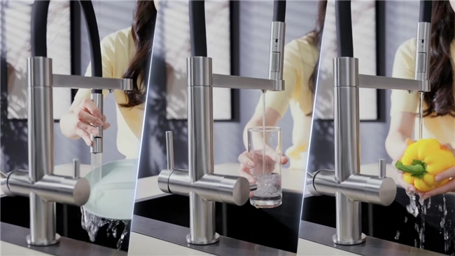 在细节体验上,这台净水机也花了不少心思。它配备了一款三合一智慧龙头,将三路独立水路集成为一,让厨房台面告别杂乱。龙头支持三种用水模式随心切换,还能360度自由旋转,清洗水槽死角不再费劲,无形中降低了厨房的打理难度。