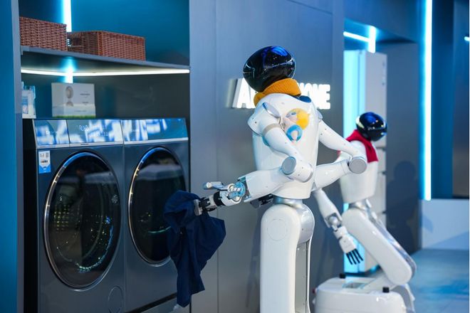 与此同时,海尔智家正式发布了三款家庭服务机器人,包括海娃家务机器人、海娃清洁机器人、海娃陪伴机器人。AWE现场展示的场景中,机器人不仅能自主搬运、分类存储食材,甚至能与冰箱联动,提醒用户“香蕉是热带水果,不要放进冰箱”。家电与机器人开始真正“组队”为用户服务。