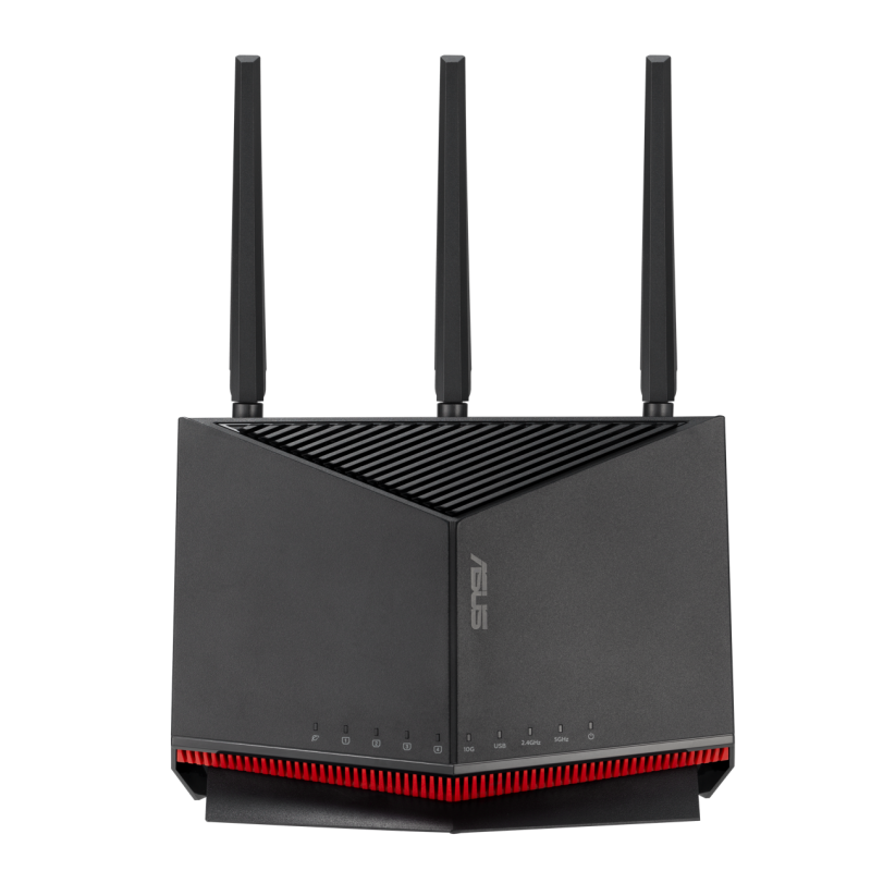 华硕RT-BE86U:中高端旗舰产品,同样搭载了博通BCM4916旗舰级芯片,性能强劲。2.4G+5G双频设计,总带宽达到6800Mbps。4个2.5GbE网口和1个10G网口,提供了丰富的有线连接选项。立式经典设计不仅散热效能极佳,还节省了摆放空间。现在,国补助力,价格诱人,性价比与性能并存。