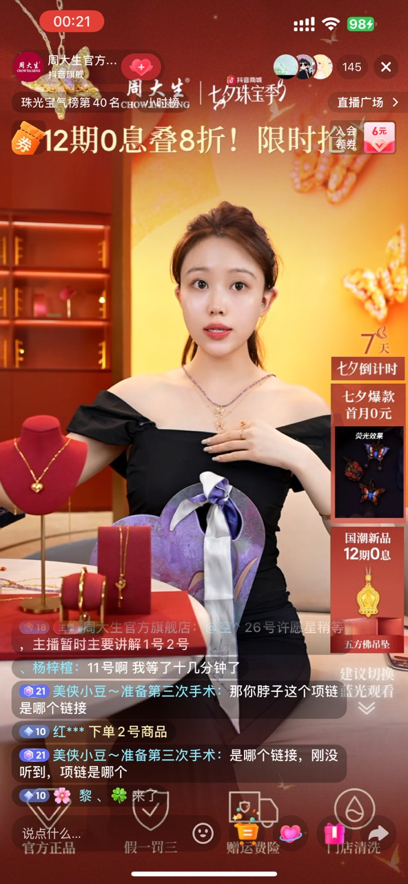 周大生以“悦己”破局,推出“送给闪闪发光的自己”这一主题并上新品,主打创新“闪光珐琅”工艺产品。在具体营销策略上,它通过代言人TVC传播“悦己”视角实现曝光。同时联动抖音电商IP活动「上新了!」,用开屏、热推、信息流等多点位资源触达悦己人群实现“种草”,直播打造“节日悦己专场”,实现“曝光-种草-拔草”的新品营销闭环。通过七夕营销活动,周大生品牌新用户提升197%,搜索成交金额环比提升260%,带动整体GMV环比提升182%,此次种草营销活动进一步赋能品牌生意提升。