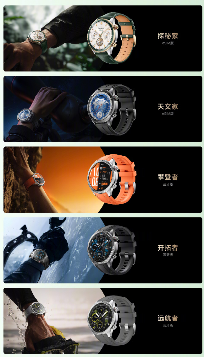 外观方面,荣耀手表5 Pro以挑战极境为灵感,致敬人类突破自我、探索未知的精神。将极致工艺与腕表经典美学完美融合,为用户带来腕上的独特体验。其中,eSIM版-探秘家在打破了传统智能手表的材质边界,还创新性地将真金镀层表圈与纳米微晶陶瓷内圈这两种材质结合,于光影流转中展现出细腻的质感层次和轻奢质感的光泽,成为你腕上新的风景线。