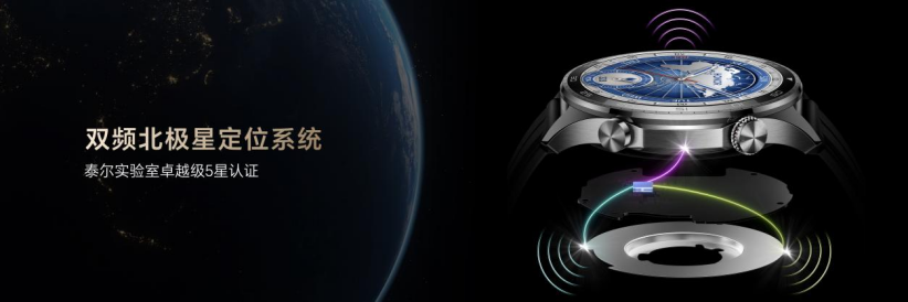 在跑步定位方面,荣耀北极星定位系统全面升级,行业首创双频向星3天线设计,结合AI融合定位算法,将定位准确度提升50%,无论你身处何处,荣耀手表5 Pro 的定位始终保持更稳、更快、更精准,精准记录户外跑步每一步。