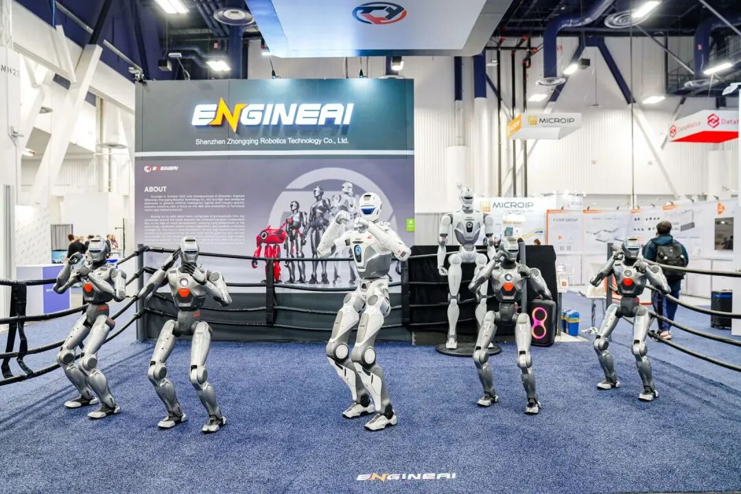 众擎机器人在 CES 中给大家带来了 T800 和 PM01,在与现场观众互动的同时,PM01 也把展台当成了片场,不断展示自己的拳脚能力,表演高难度动作。