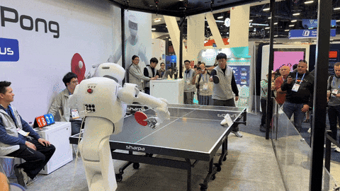 不过别小瞧机器人打球,现场这位小哥哥就没接住 Sharpa 打的球,所以没有乒乓球基础的选手可能不一定好赢它。