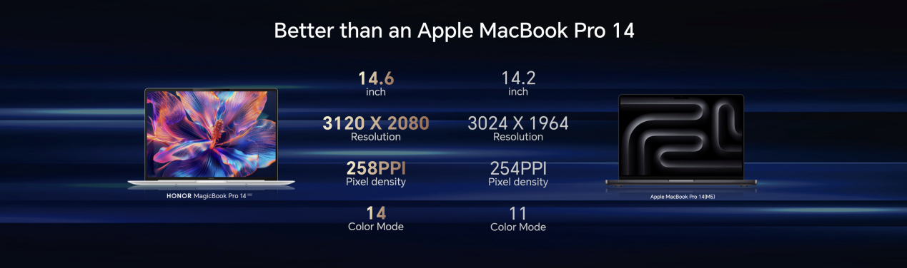 荣耀MagicBook Pro 14 2026搭载全新一代HONOR Turbo X技术,可智能识别办公、游戏、视频等日常使用场景,优化能效调度策略、动态分配系统资源、调节设备功耗,带来最高80W性能释放。实测数据显示,荣耀MagicBook Pro 14 2026的4K视频渲染导出速度优于苹果MacBook Pro 14,还可流畅运行《赛博朋克2077》《黑神话:悟空》《极限竞速:地平线5》等主流3A游戏大作,带来3A游戏绝佳体验。