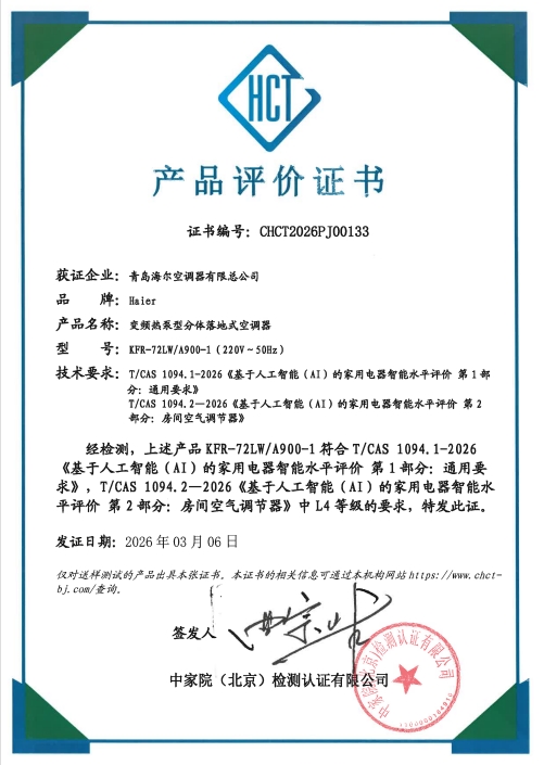 另一方面,海尔空调在会上获颁行业首张L4级AI空调产品认证证书,并联合中国家用电器研究院联合起草行业首个健康空调团体标准。这意味着,海尔空调不仅在AI智能交互能力上达到行业顶尖水平,更通过将健康空气从概念变成可量化、可评估的行业准则,实现了从技术领先到标准引领的跨越。