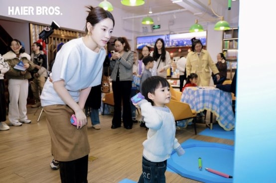 闯关的热浪稍歇,“好奇探索小圆桌”旁却热度不减。育儿专家与家长们围坐,青岛出版社总编辑钦林威、青少年心理咨询专家茆丁、海尔智家LC市场总经理任鹏和家长们讨论着育儿时的困惑,话题从“如何保护孩子的好奇心”延伸到“情绪管理的小妙招”。海尔兄弟以“共创官”身份静静聆听——他们不仅收集孩子们的动画新故事,也带来了极具科技感的“伙伴”:AI陪伴机器人可以定制性格,成为孩子的专属探索伙伴;宠物饮水机实现污水0循环,让萌宠喝上鲜活水;点读笔与新版图书联动,轻轻一点,枯燥的文字便化作有声故事。在这里,科技不再是冰冷的参数,而是对每一份好奇的温柔回应。