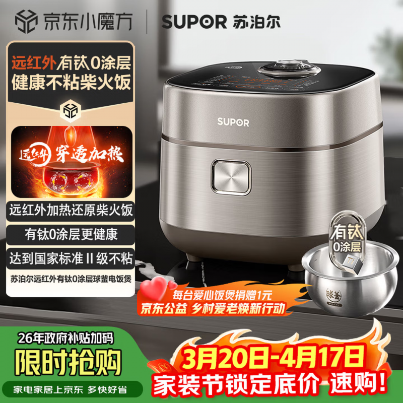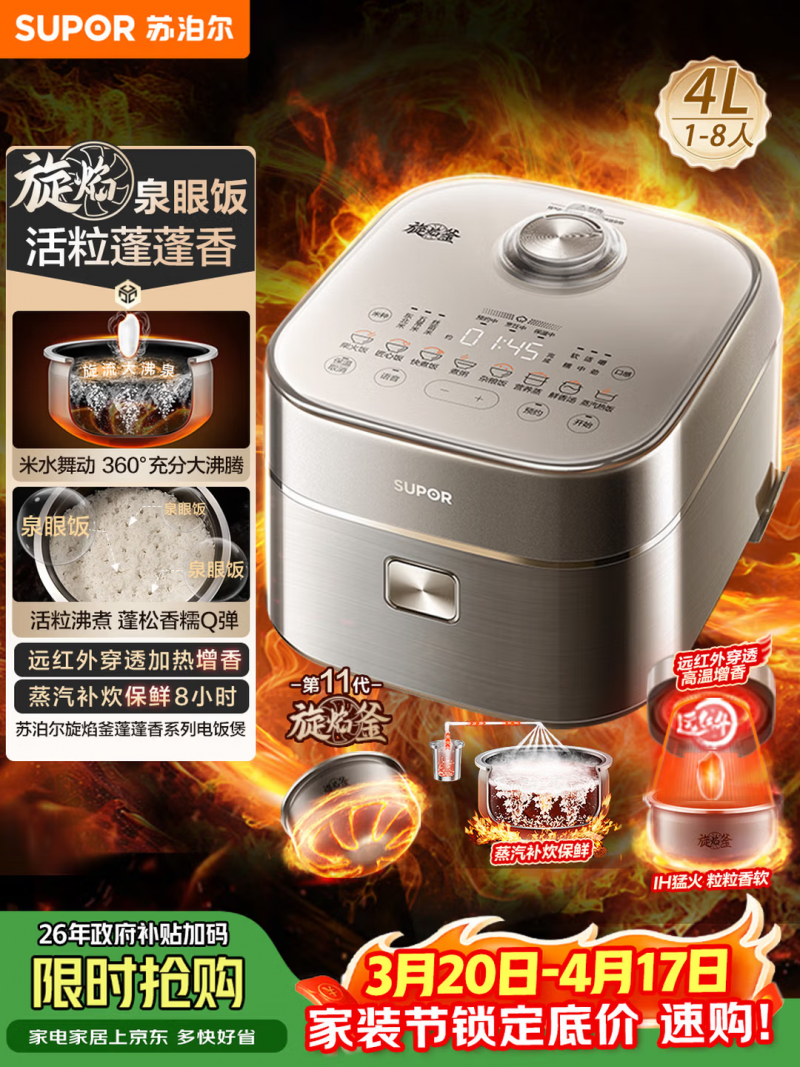 推荐电饭煲品牌&型号:苏泊尔旋焰釜电饭煲SF40A81|定价999元 国补后最低721元