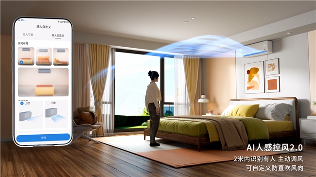 更让年轻人心动的是,依托与海思联合创新的AI人感科技,这款空调为用户打造了“人近防直吹,人离节能”的智慧场景。走近时,空调会自动调整送风角度,避免直吹;人离开后,空调自动关机,防止忘关浪费电费。这样的场景,也反映出了海尔智家智慧家庭战略的核心:以用户为中心。