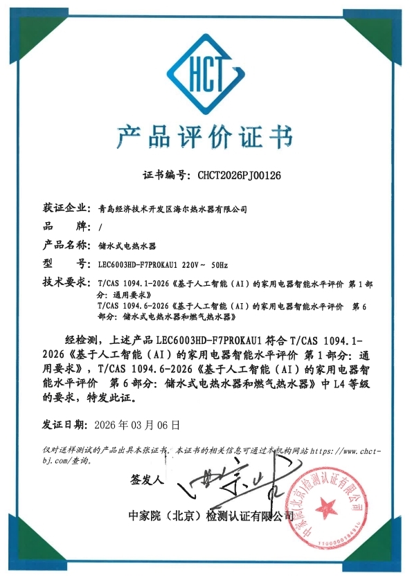 行业唯一!统帅小音浪智能体电热水器F7获中家院L4级认证