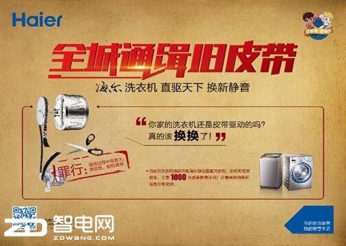 从6月12日开始到23日,海尔洗衣机在太原开展“全城通缉旧皮带”活动,面向全市用户征集使用皮带电机驱动的传统洗衣机。届时,海尔洗衣机还将通过现场邀请用户一起剪断百台洗衣机皮带的方式,号召用户“拒绝噪音 告别皮带”,掀起新一轮换新海尔直驱洗衣机的高潮。