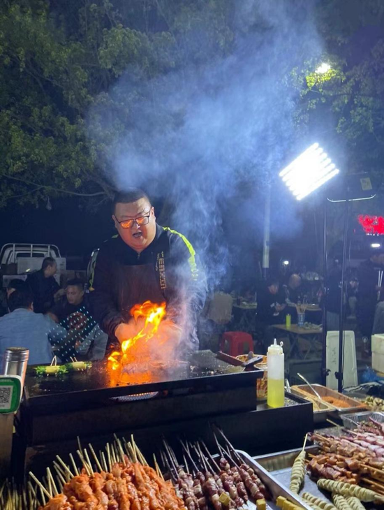 夏村夜市中一位烧烤摊主。图源:作者拍摄