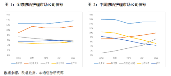 分开来看,眼下中国防晒护理市场主要被资生堂、欧莱雅等大型跨国化妆品公司占据,2022年资生堂、欧莱雅市场份额逐步提升,两者市场份额分别为14.80%、9.90%。