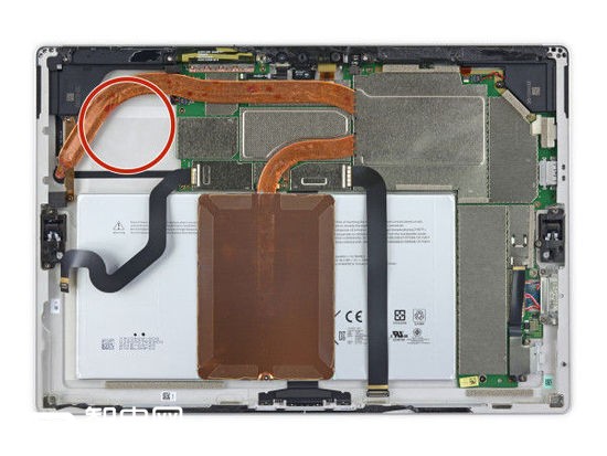 之前有用户反映在持续使用Surface Pro 3一段时间后,会出现局部过热现象,但这次在Sueface Pro 4身上不会再出现了。Pro 4才针对散热问题重新设计了内部结构,通过外媒的拆解图片我们也能看到,导热片分为两篇,一个向左侧散热,另一个向下散热,这样即使用户在使用Surface Pro 4高效工作时,并不会出现局部散热的情况,而是整个机身产生可接受的温热现象。